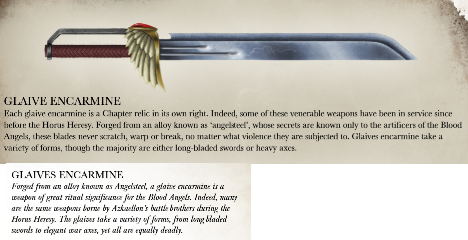 >>96950681Honestly I kind of like it. All my encarmine/angelsteel weapons are painted a different color to my regular powerswords
