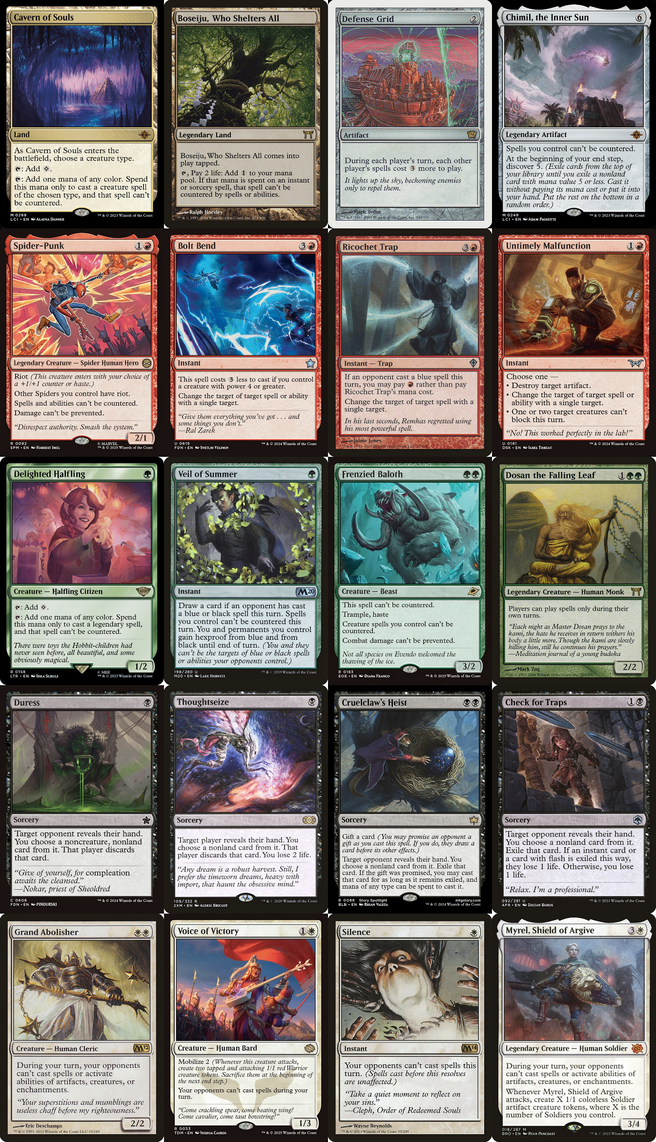 >>96952721Rhystic StudySmothering TitheThe One RingUnderworld BreachMana DrainFierce GuardianshipDeflecting SwatNecropotenceSkullclampWinter Orb