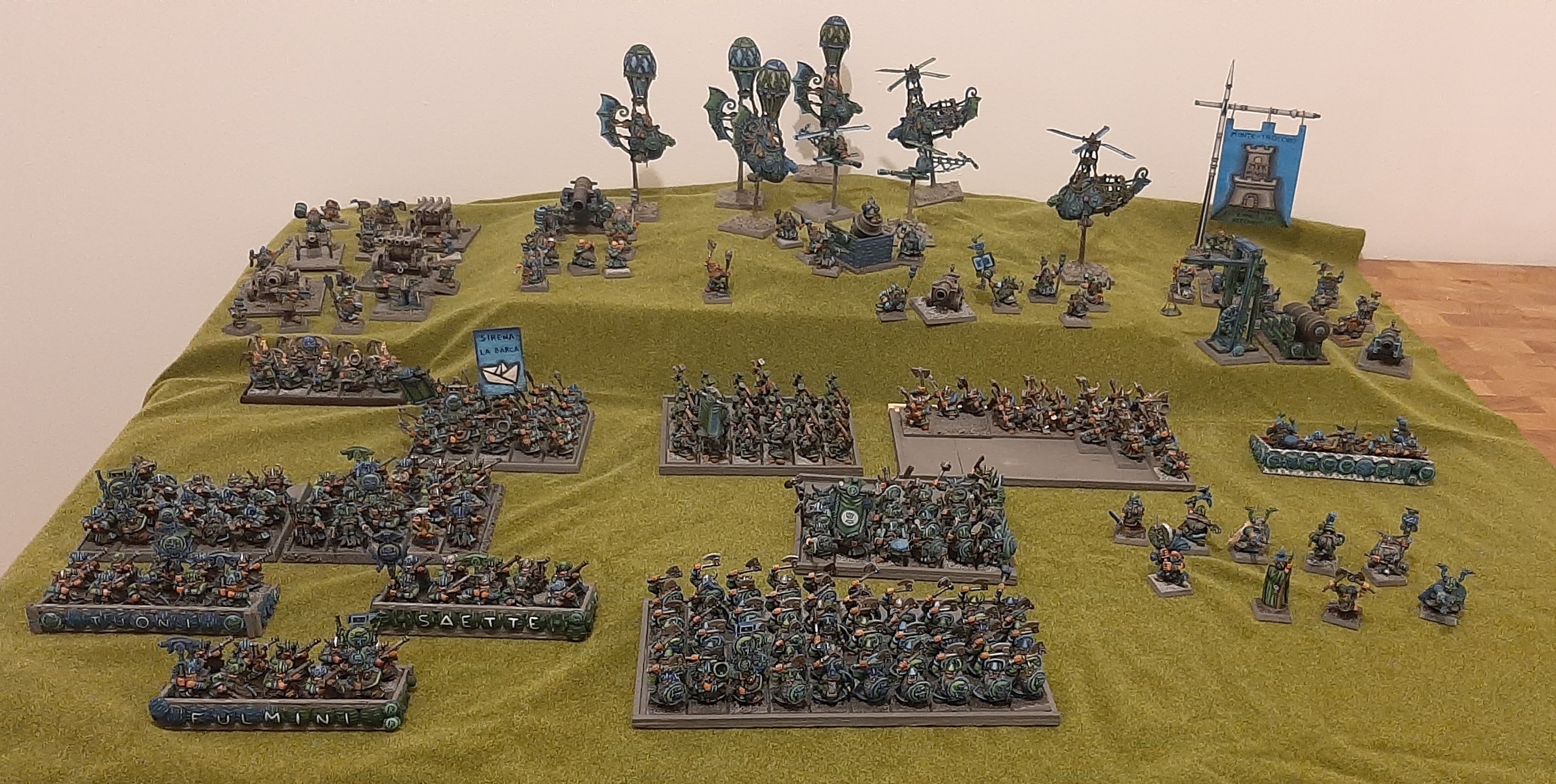 >>96960275Thank you! Here's an even older picture that shows the copters better. The 2 metal ones are from Black Tree design. The resin ones are prints from highland miniatures. I have 3 more gyros to paint...The 7th ed metal one (not looking forward to build it) 2 ornythipters from RPE (lovely models) and then I'd like to get/build some more hot air balloon and dirigibles. After I'm done with my current backlog.