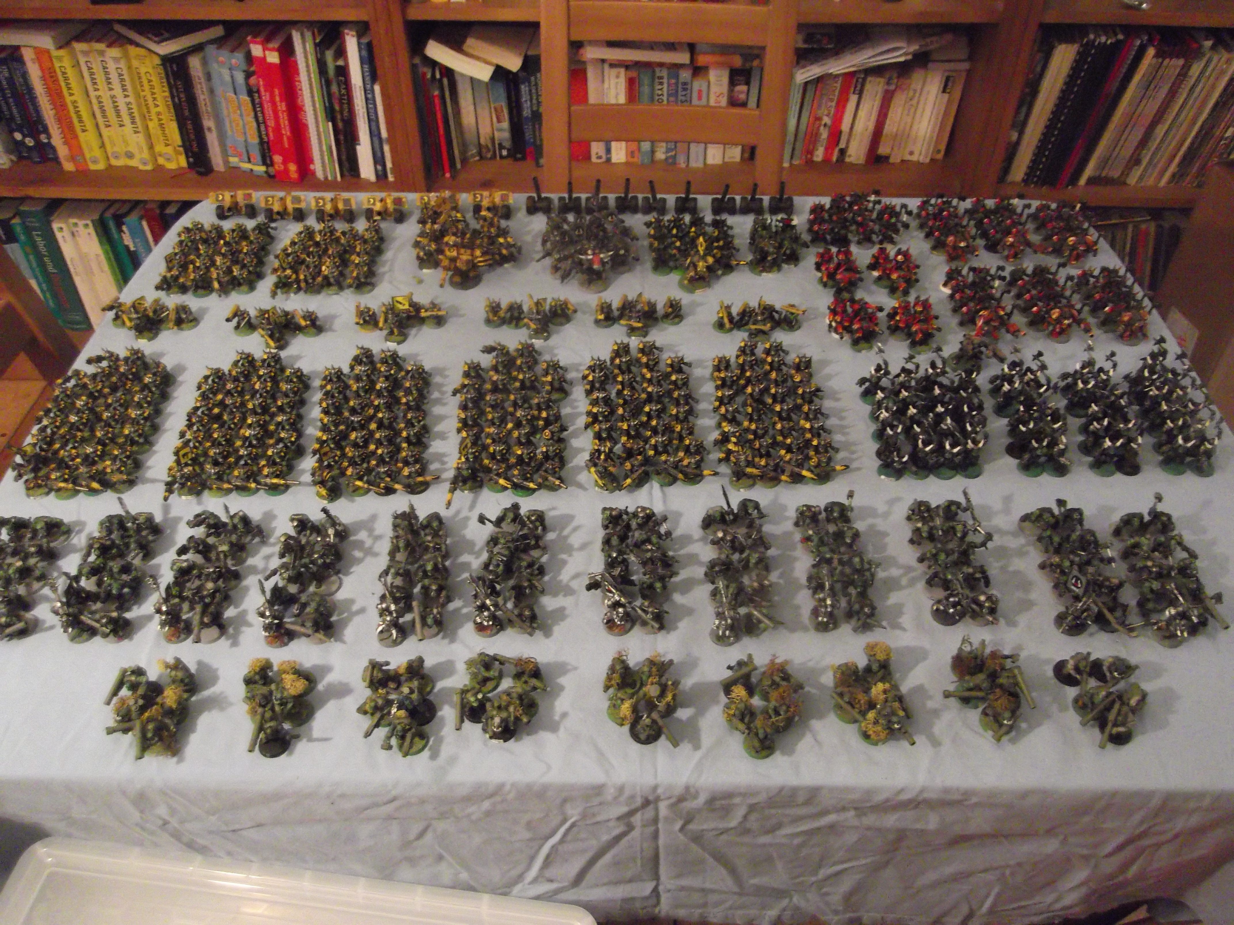 My 40k 3rd ed Ork Waaaagh! Mostly Bad Moons and Goffs, with a few mobs of Evil Suns Deathskulls.