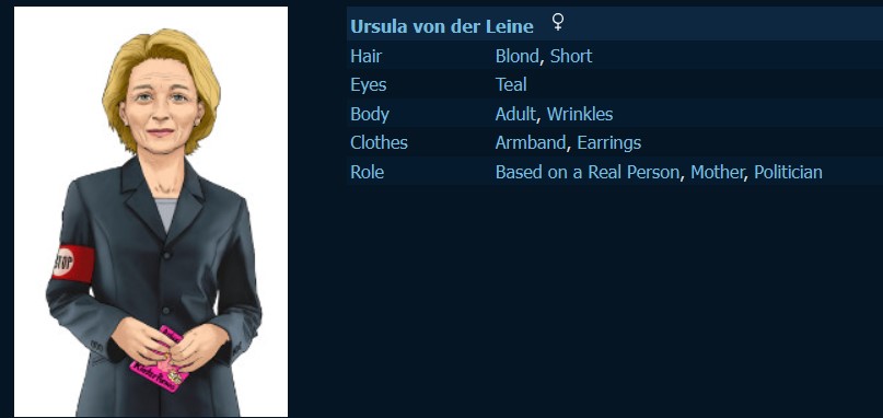 >>96962675We even have the canon ending. /tg/ related, because if I type another offtopic post I'm going to go bonkers.>>96971628She's the swampiest swamp creature, the perfect bureaucrat. No links with her home country, raised by politicians and old money, foreign-educated, her thesis was plagiarized and her political career a complete disaster (Ursula "the Bundeswehr Destroyer!"). As an EU lead, she has been nothing but an embarrassment, routinely humiliated by everything and everyone. If people truly had any power in the EU, she would not even be a village doctor, she's probably not even qualified for that.But the powers that be want her there, and she's there.
