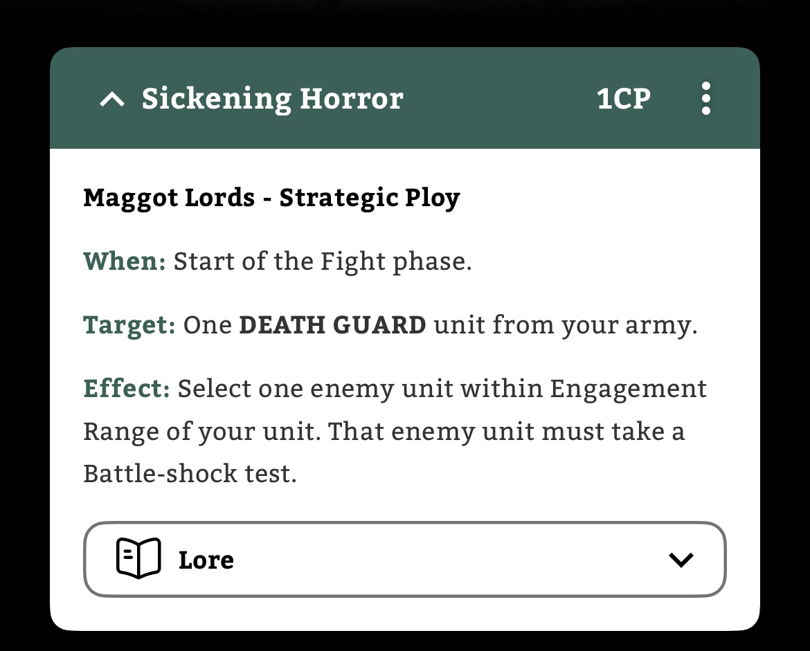 >>96985092I noticed that theres certain detachments where the uppy downy shit can get spammed so I thought it would be hilarious to do that with a mawloc, just consistently pumping out mortal wounds to everything around it