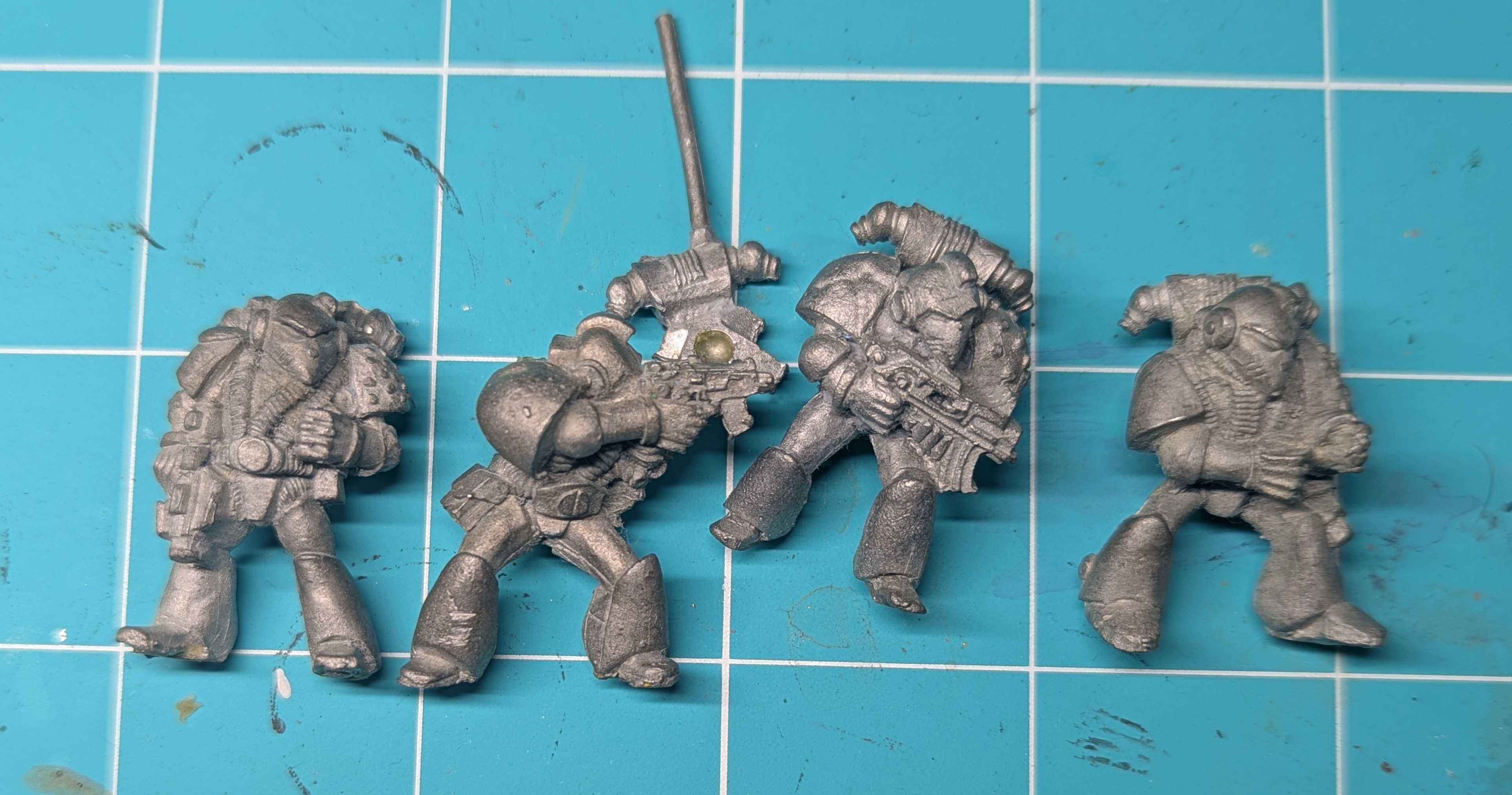 Can anyone help me ID these guys pretty please?I'm pretty sure the leftmost one is Brother Leanman and the one on the right is the RT6 heavy weapon marine but the two in the middle elude me