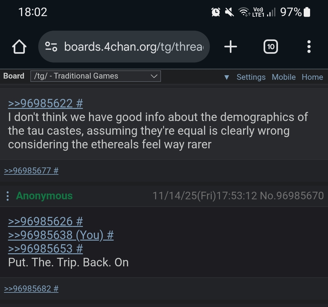 >>96985774>discussing the lore and shitAh it was a tourist the whole time. Shouldve known but last (you) from me