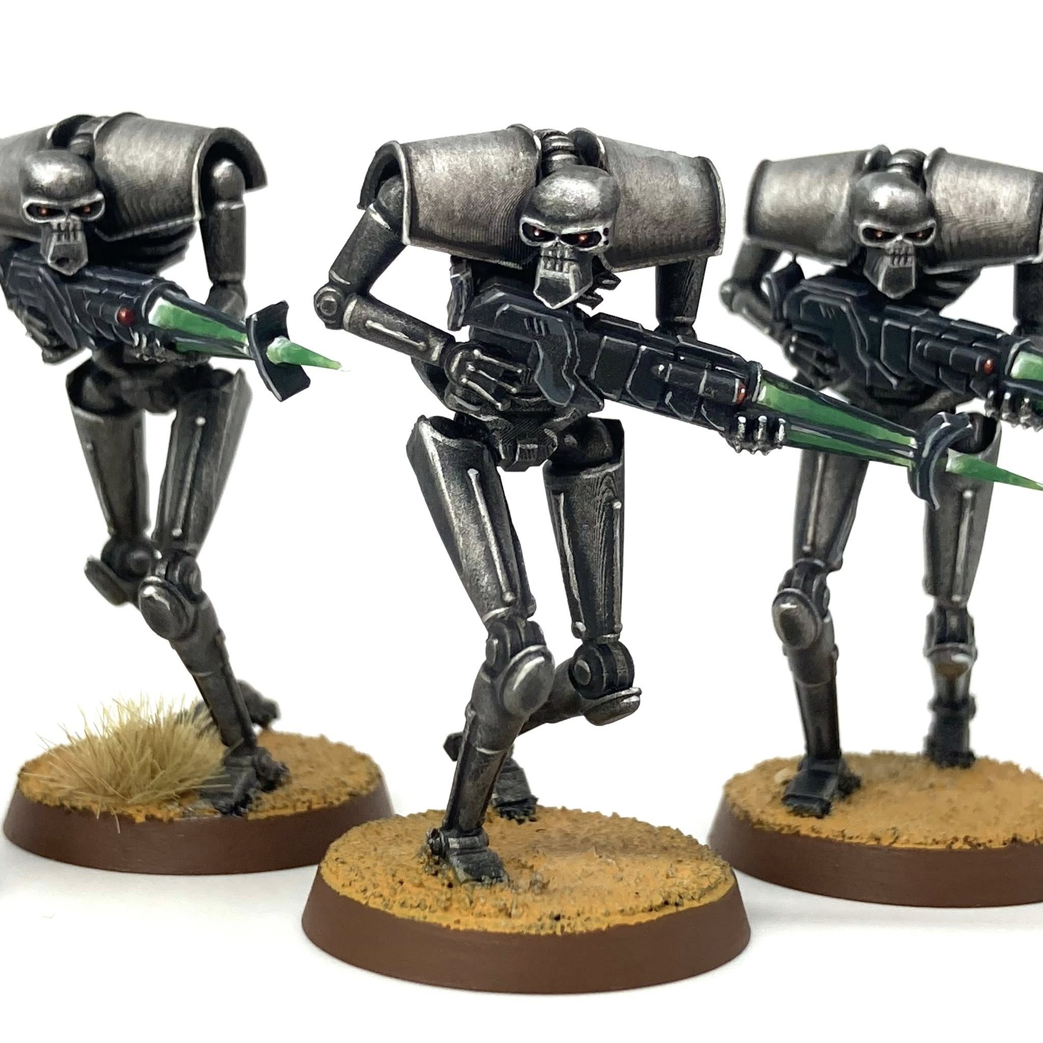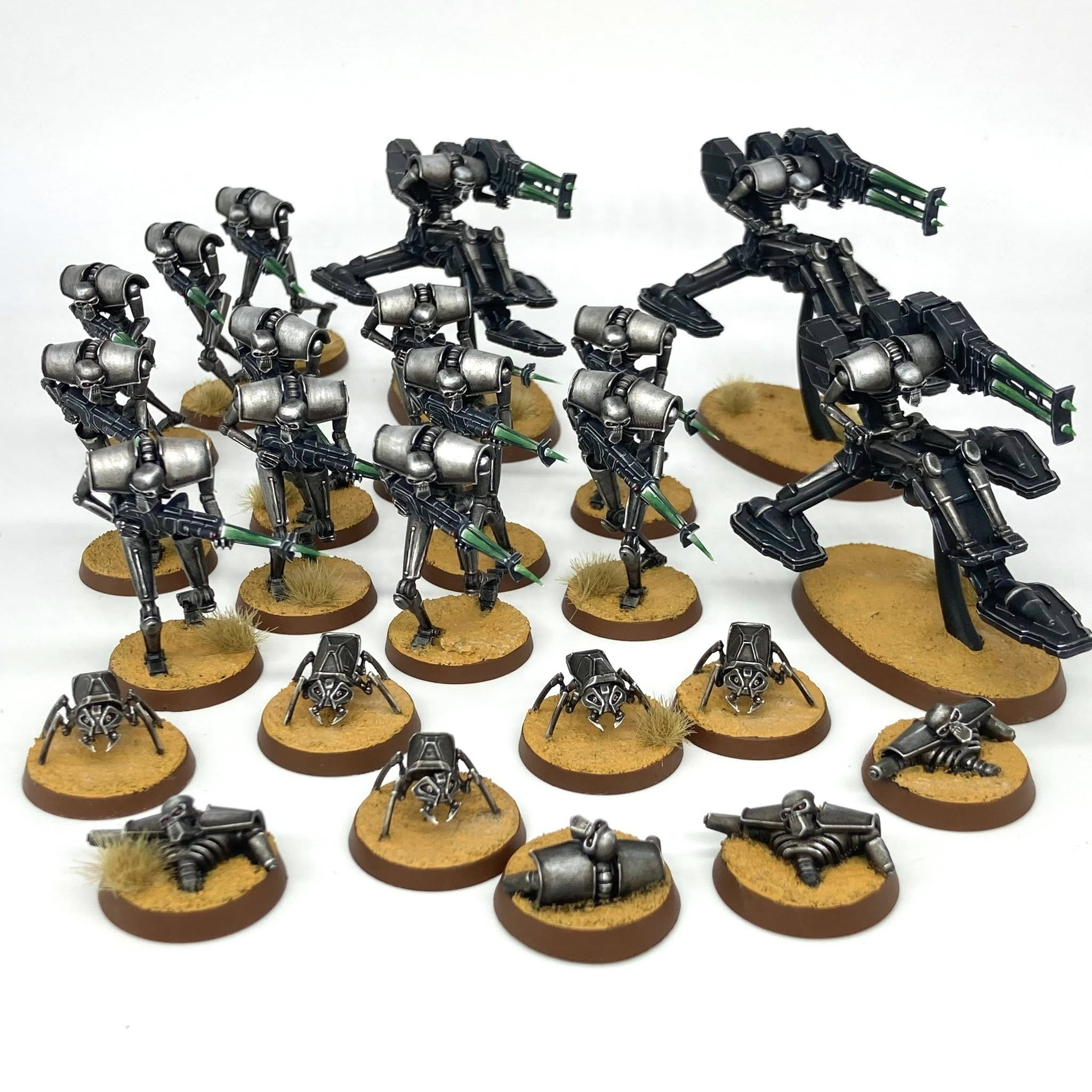 Necrons should run 60 warriors, a monolith and an overlord with a res orb and nothing else. All spraypainted silver.
