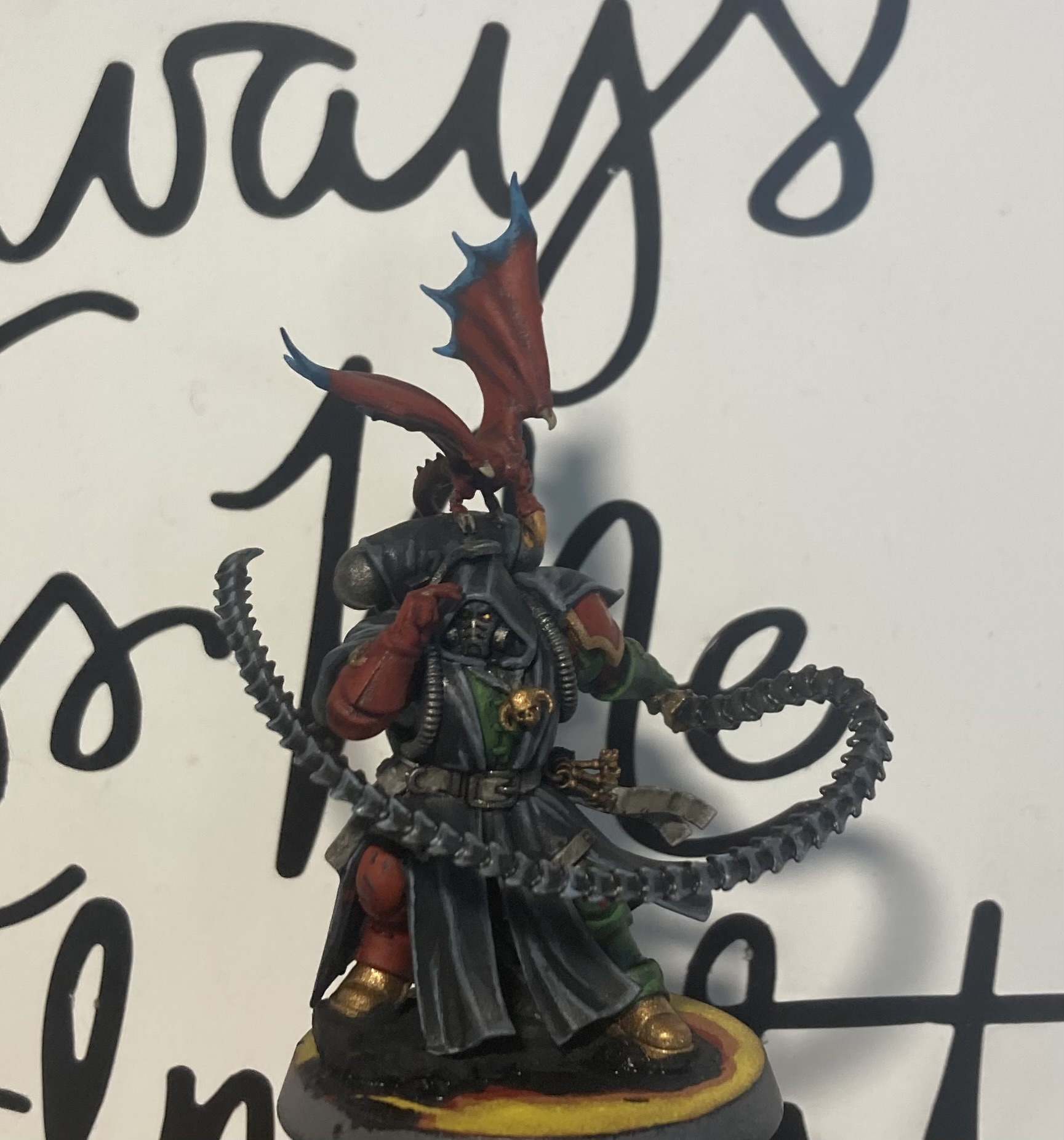 >>96985929A mutated fucked up Warpsmith/Chaos Sorcerer, like with a cape that's a mix of tentacles and mechadendrites and a staff/axe hybrid.