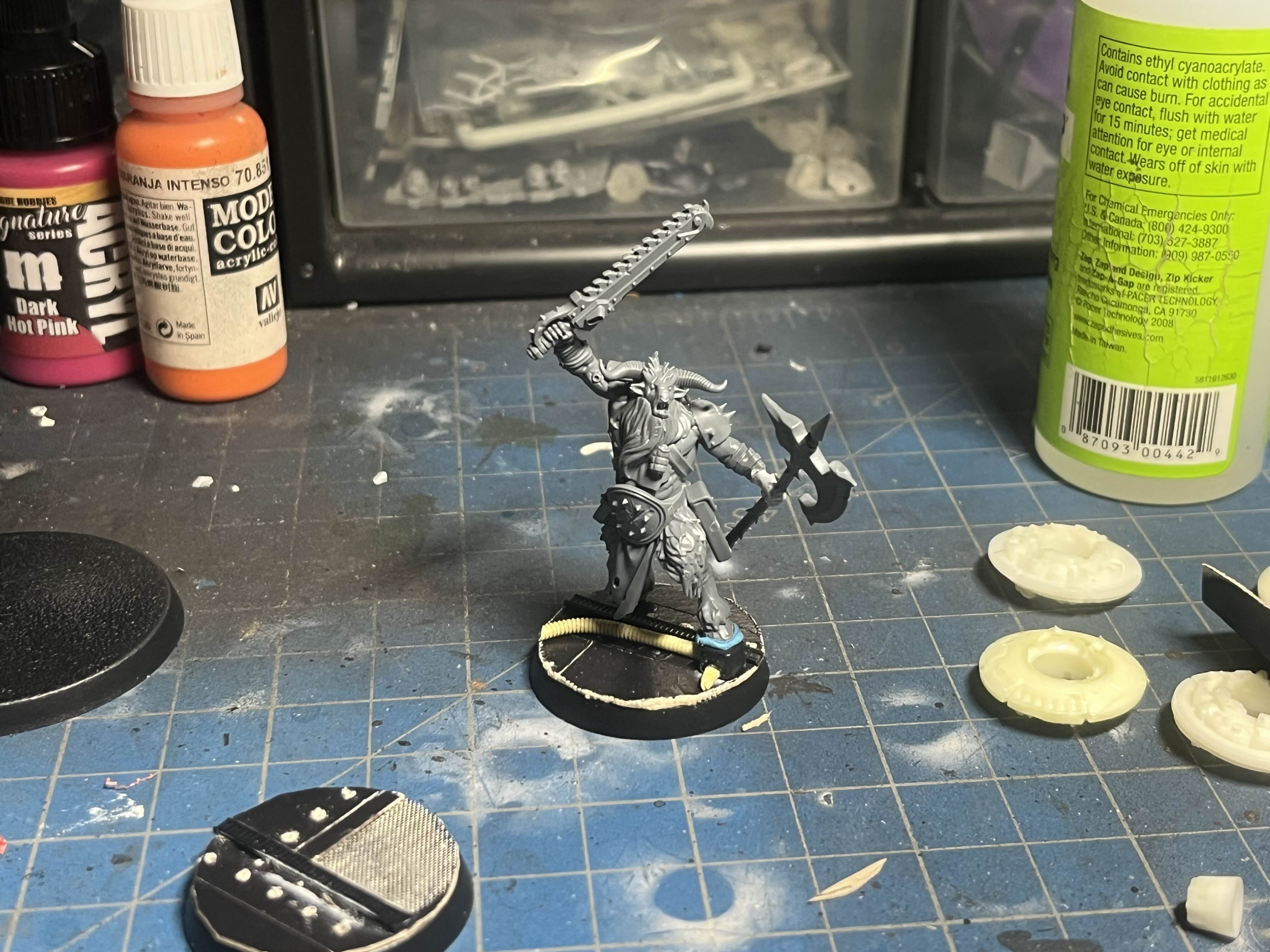 I found this little dude in a box of space marines in a charity store and decided to base him (poorly)