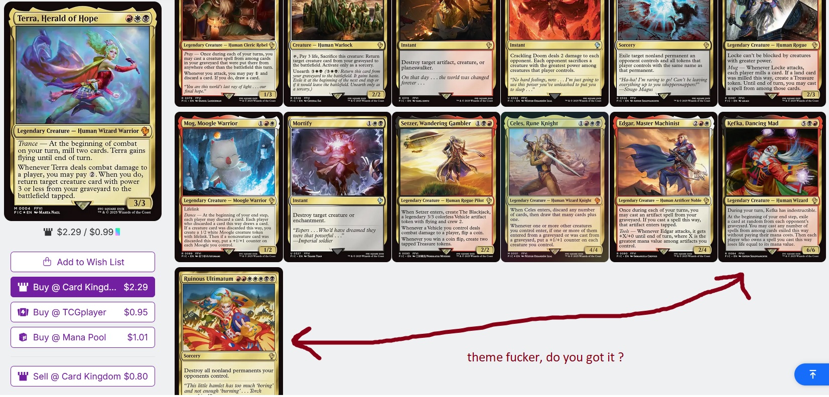 >>97044996This was a one-off and it's the reason FF was the best selling set of all time. WotC left to their own devices will continue to print only fatties, 40 year old black women, troons and grannies until morale fully deteriorates.