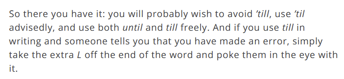 >>97047977https://www.merriam-webster.com/grammar/should-you-use-until-or-till-or-til