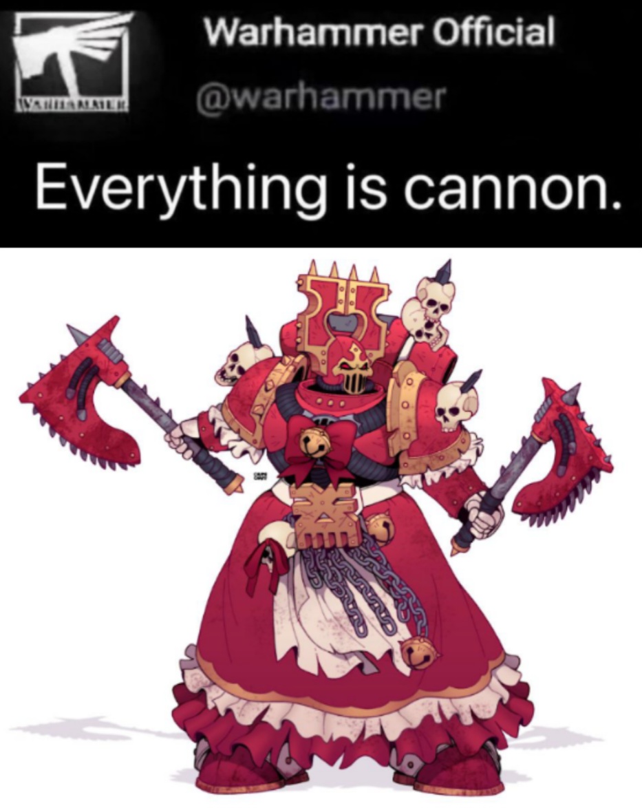 I'm gonna be honest there's little positive to talk about these days. I still hate primaris, still hate what they've done with the IG reorganizatin, still hate 10th edition and the prospects of the rules not doubling down on shit I hate are at an all time low. AdMech still gets cucked by superior 30k sculpts and they replaced the cool global campaigns from 3rd edition to disappointing "plot moving" end of edition campaigns with 4 books that are boring to read and have zero player involvement (which is something I don't get because Malign Portents was fucking amazing and that was in 2017 so not that long ago). Imperial Armour remains dead and all the cool FW models and units have either been squatted or locked in 30k. Xenos are eating good at least and I'm glad for them, hopefully next summer is the Ork refresh.