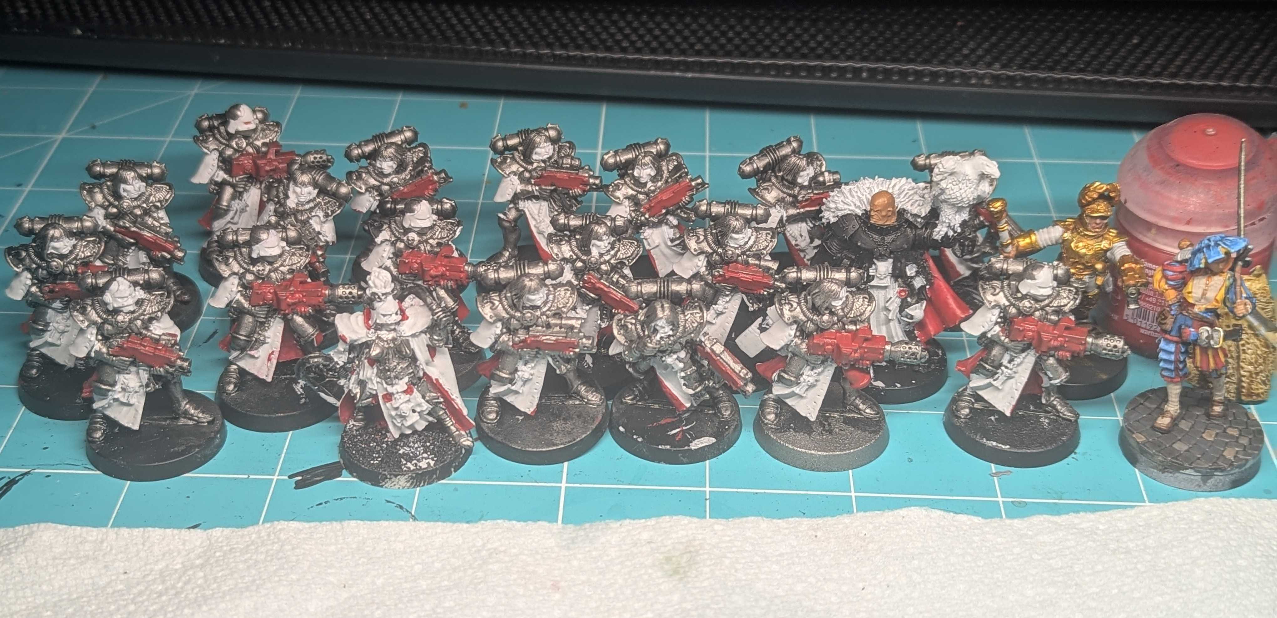 >>97048646Thanks, slowly learning how to paint cloth with all these veterans lelAnd think so, this GSW ember orange is pretty much the perfect hot red-orange for the new scheme, now I'm going schizo over the lighter grey on their bodies reading as white no matter how much darker I go with it lmao