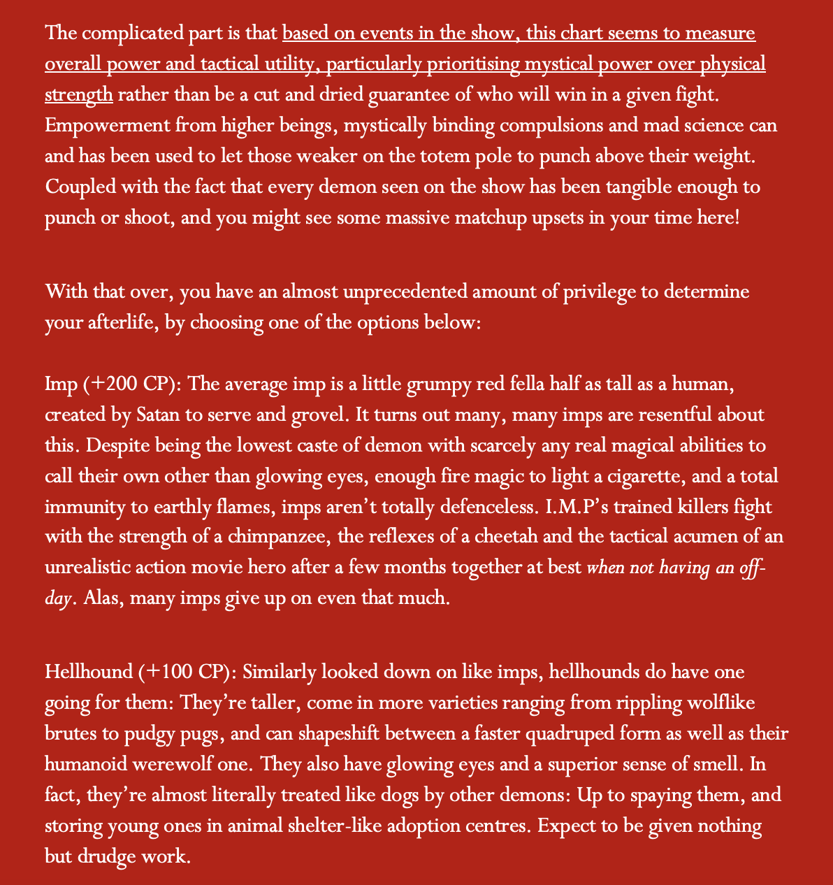 >>97060044A lot like the Buddhist hells. Theoretically, anyone can redeem themselves, but it might take a quadrillilon years, and a lot of the worst offenders never will until the literal end of all existence.