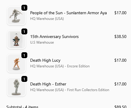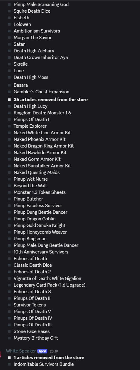 >>97073821Probly just new stuff they put up, I'm not missing any old plastics that have any gameplay content and am only missing a couple resins with gameplay content so it's unlikely that the ones I'm missing get rerun. I usually don't buy resins without gameplay content because I'm terrible about painting stuff and what's the point of buying that if you aren't gonna paint it, but if there's something truly sexy I might get it anyways.