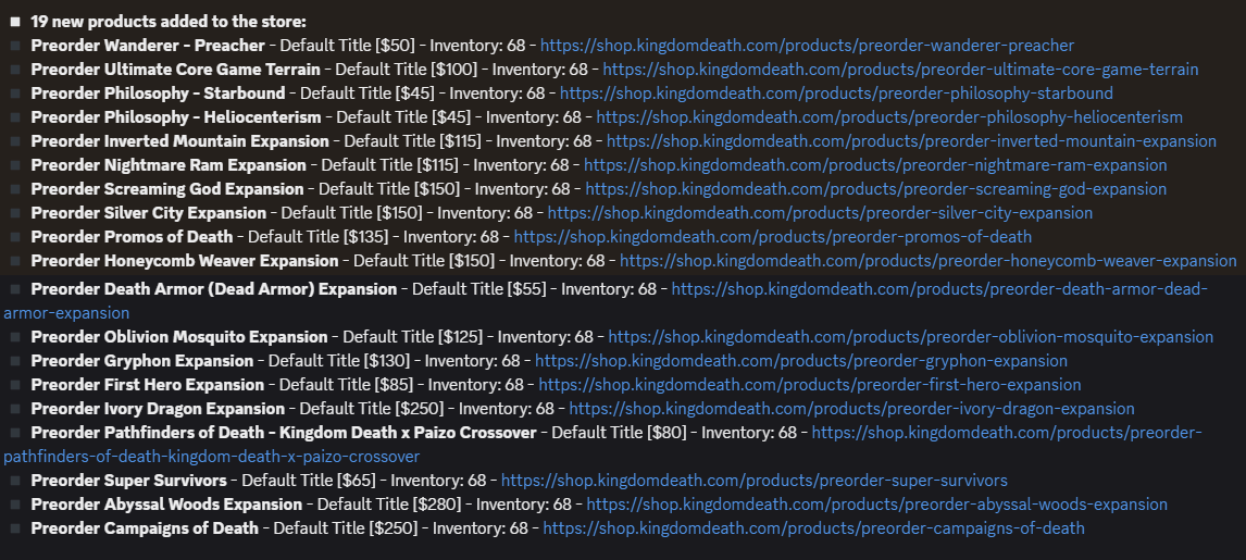 >>97067113https://shop.kingdomdeath.com/collections/frontpage/There may still end up being a restock
