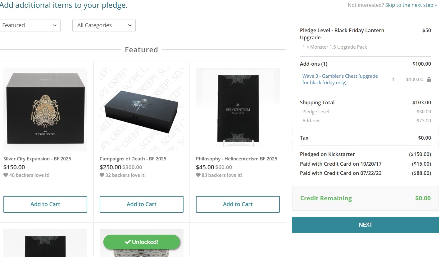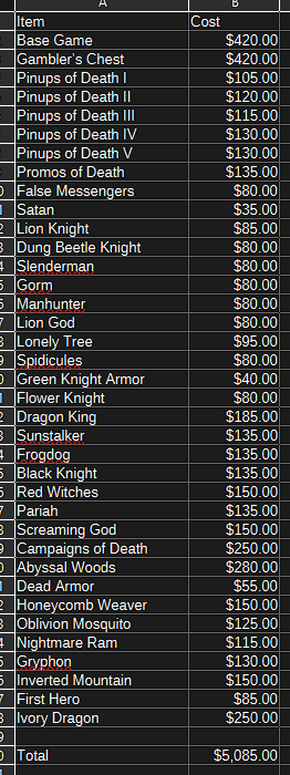 >>97076000Nobody tell him what the Satan backers paid for everything. Or what the Gamblers' Lantern backers who already had the core game and first 12 expansions paid...
