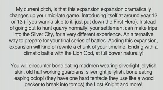 >>97075971>>97075979My problem is I want silver city to enhance lion god,because I love the miniature and i like a challenging late game quarry but he's just not really worth the fight other than for the challenge