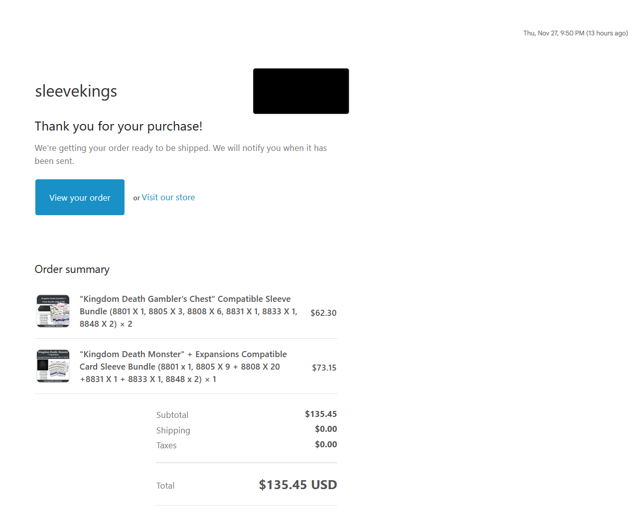 >>97075456After sleeping on it, I decided to add>Wanderer - Candy>>97076619Ayup>>97076626>implyingI heard the KDM brand ones are thicker, one of the discord peeps suggested sleeve kings since they're also having a BF sale.>>97077058There's a pre-order for the reprint.https://shop.kingdomdeath.com/collections/preorder/products/preorder-kingdom-death-monster-1-6-reprint>>97076835>>97077108What you aren't accounting for is that if everyone took this advice, the kickstarter would have failed and there'd be no game to buy.