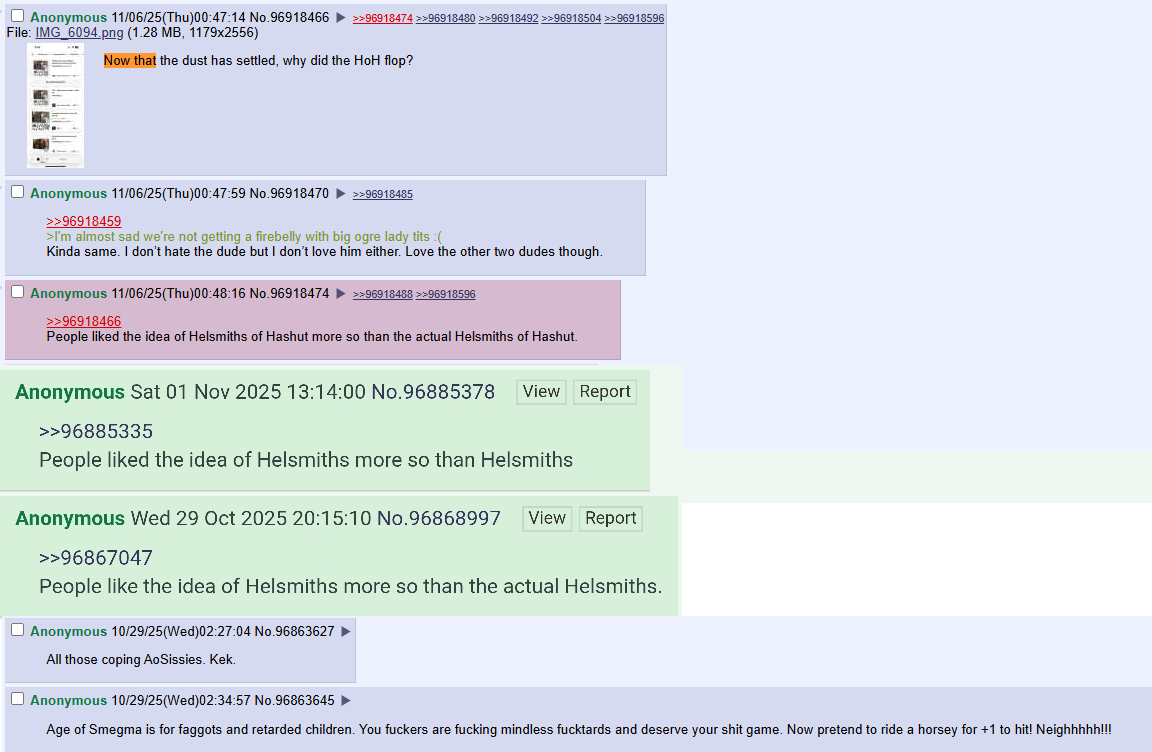 >>97055123People liked the idea of HoH more so than the actual Helsmiths themselves.
