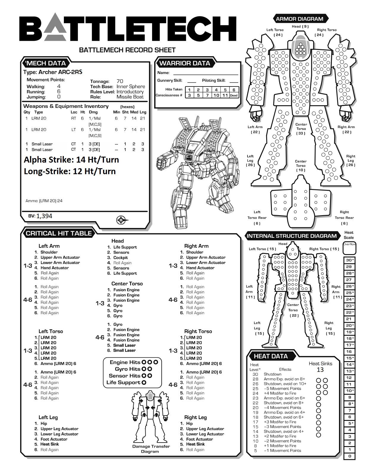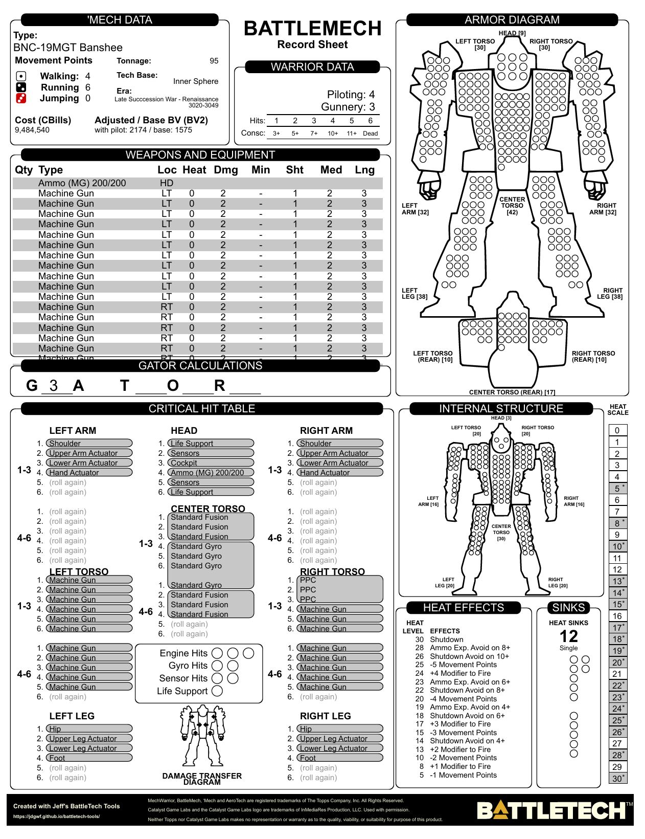 Or perhaps you've realized that since the Banshee is just charging to the front anyway, that 19 Machine Guns is better than an AC/5 and a SL. With all the weapons located in the torsos, you'll even be able to punch with both arms and still fire off those glorious 19 guns. The ammo bin is of course located in the head, where's it's safest. ;)