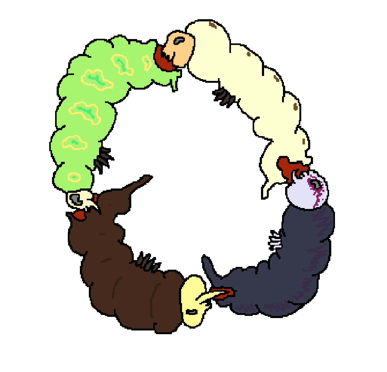 They then voltron'd into an ouroboros of sorts trying to dig into each other thoraxes? I couldn't depict it properly but it was more like invading/inserting each other rather than eating/consuming