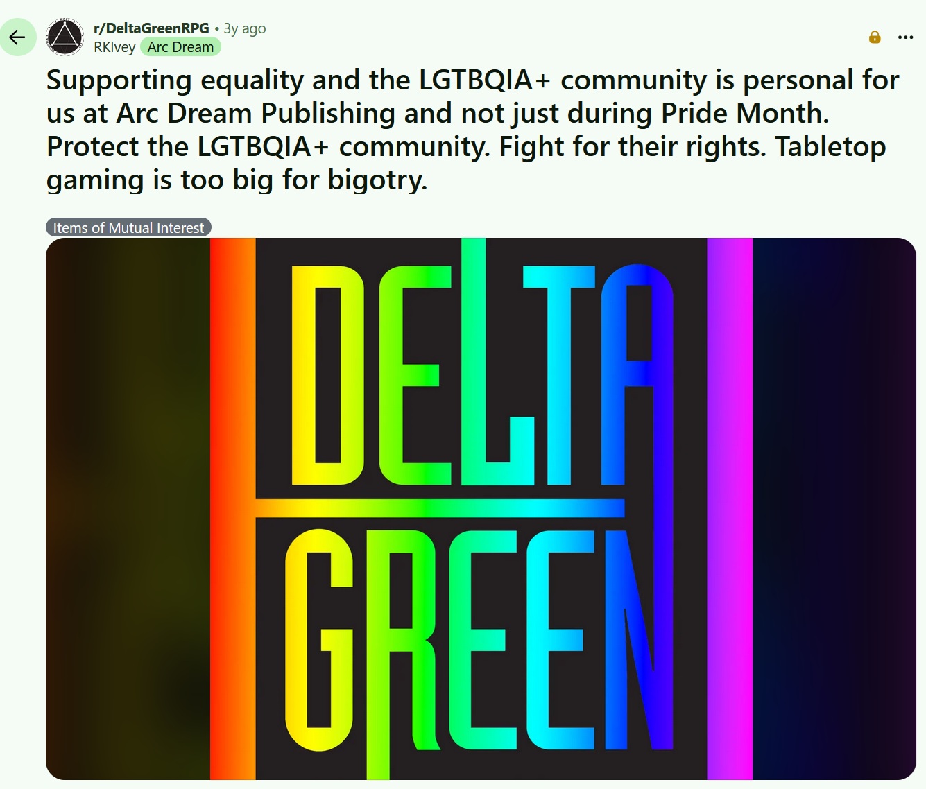 The real problem with Delta Green is this: They took real-world conspiracies and added a Lovecraftian twist to them. Now they just sprinkle in culture issues and tack on Nyarlathotep or whoever.90s Era Antagonists:>Mi-go using Gray aliens as puppets>MJ-12 trading American people for alien tech>Nazi wizards in hiding fucking w/ cannibalism>90s cocaine mob cultist raversModern era:>Racist farmers who beat their wives>New age genetic baby breeders on a boat>Incels who met Da Yella Kang onlineAnd now with Caleb's we get>A literal rape monster>Russian pedos and animals>Racist Cop Gangs>Racist weed farmers strain>Tech Bro Evil Guy App