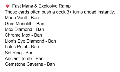Previous: >>97067282>Most recent bracket system updatehttps://magic.wizards.com/en/news/announcements/commander-brackets-beta-update-october-21-2025>Outline article introducing the bracket systemhttps://magic.wizards.com/en/news/announcements/introducing-commander-brackets-beta>Current banlisthttps://magic.wizards.com/en/banned-restricted-list#commander-banned>Former Commander website, where you can learn the basics, and read the format philosophy laid down by the rules committeehttps://mtgcommander.net>Statistically see what everyone else puts in their commander decks based on what is posted to the internethttps://www.edhrec.com>Learn about PDH, Commander's budget pauper formathttps://pdhhomebase.com/https://www.pdhrec.com/>Deck list site: You can search for decks that other people have made. Authors often have comments that explain their deck strategy and card choiceshttps://www.archidekt.comhttps://www.moxfield.comhttps://www.tappedout.net>Find out what lands you can add to your deck, sorted by category, based on a chosen color identityhttps://managathering.com>Card searchhttps://scryfall.com>Proxy a deck or a cube for cheaphttps://pastebin.com/9Xj1xLdM (embed) (embed)>Preconshttps://magicprecons.com>TQShould wish cards be allowed to work in Commander?
