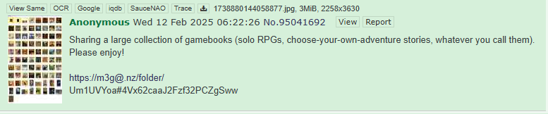 >>97075464Bro, the curated gamebooks are a fucking graveyard nowadaysLook on the right