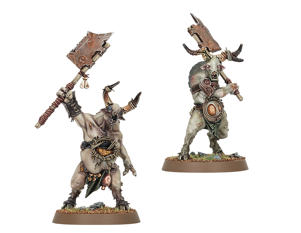 I think these guys would make pretty good "normal" beastmen, i.e. not pestigors, if you just clean off the boils and add some fur. I've always wanted Beastmen to be mutants with varied body shapes and a more monstrous look, which is in line with every fluff depiction, instead of just being uniform goatmen. The new range here would fit the bill, monstrous and freaky.