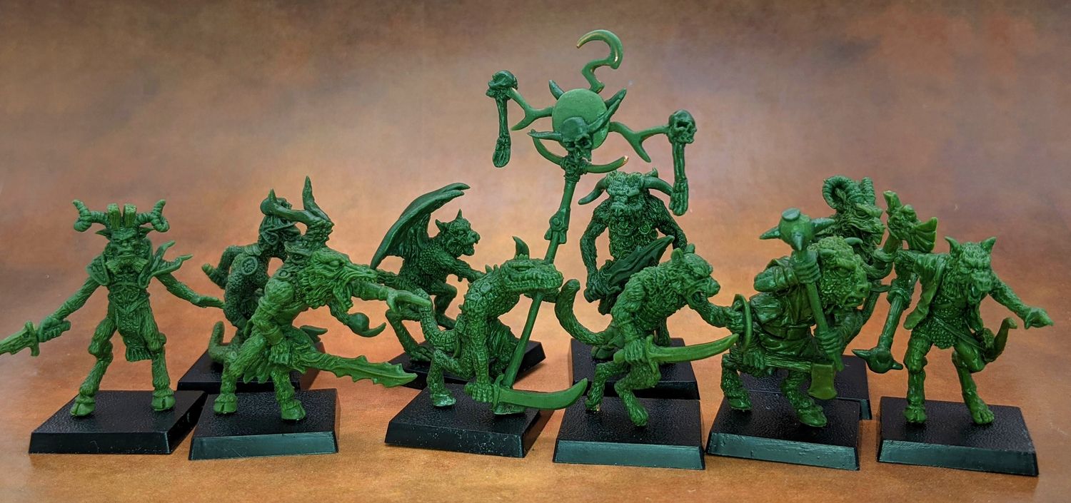 >>97093814That's still not going to give you the variety of mutations that a properly heterogeneous herd would have.You need to buy multiple different kits (beastmen, frostgrave snakemen, tzaangors, wargames atlantic werewolves, to name a few) and bash them together to get close to the ideal