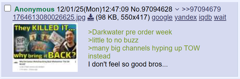 >>97094475Did any of you responding watch the video? The title is a little click baity but he isn't down on TOW.