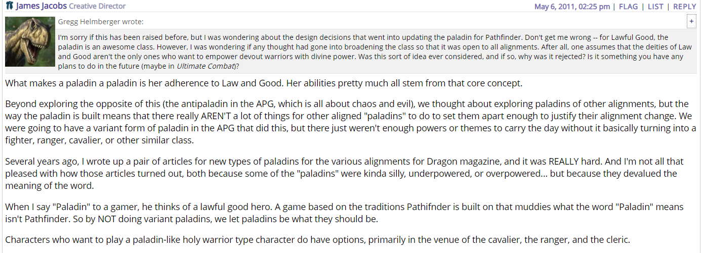 >>97140515>The reddit moderator for PaizoWho's got neither authority nor insight and was deemed too insufferable even for Reddit and demodded.