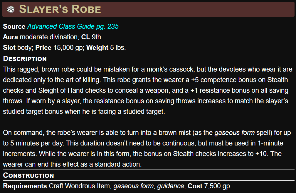 >A slayer can study an opponent he can see as a move actionIs there a formal definition of "opponent" anywhere in the pf1e rules? In natural language that word would be a synonym for "hostile creature", but I have to ask... because it sure would be nice if I could just glare at a party member in the morning in order to get my resistance bonus from my slayer's robe...