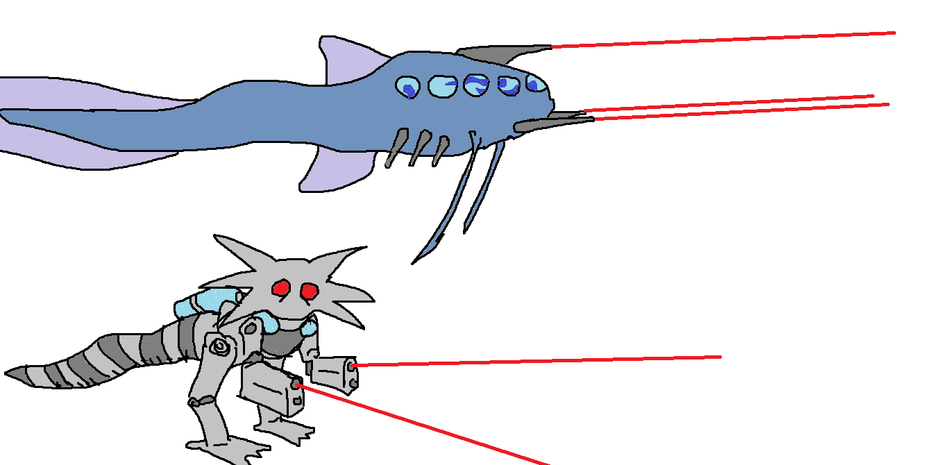 (sounds of las bolts)