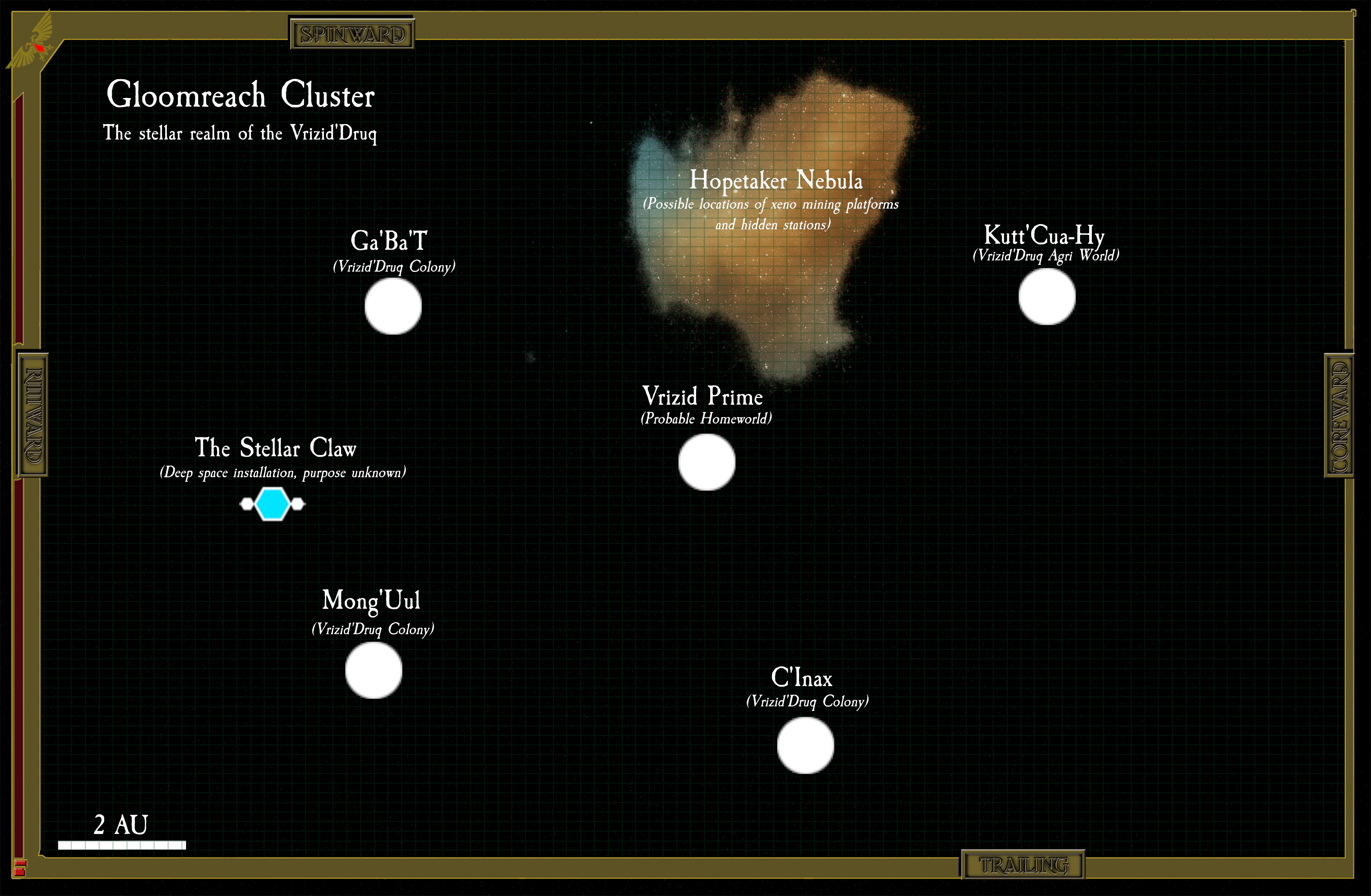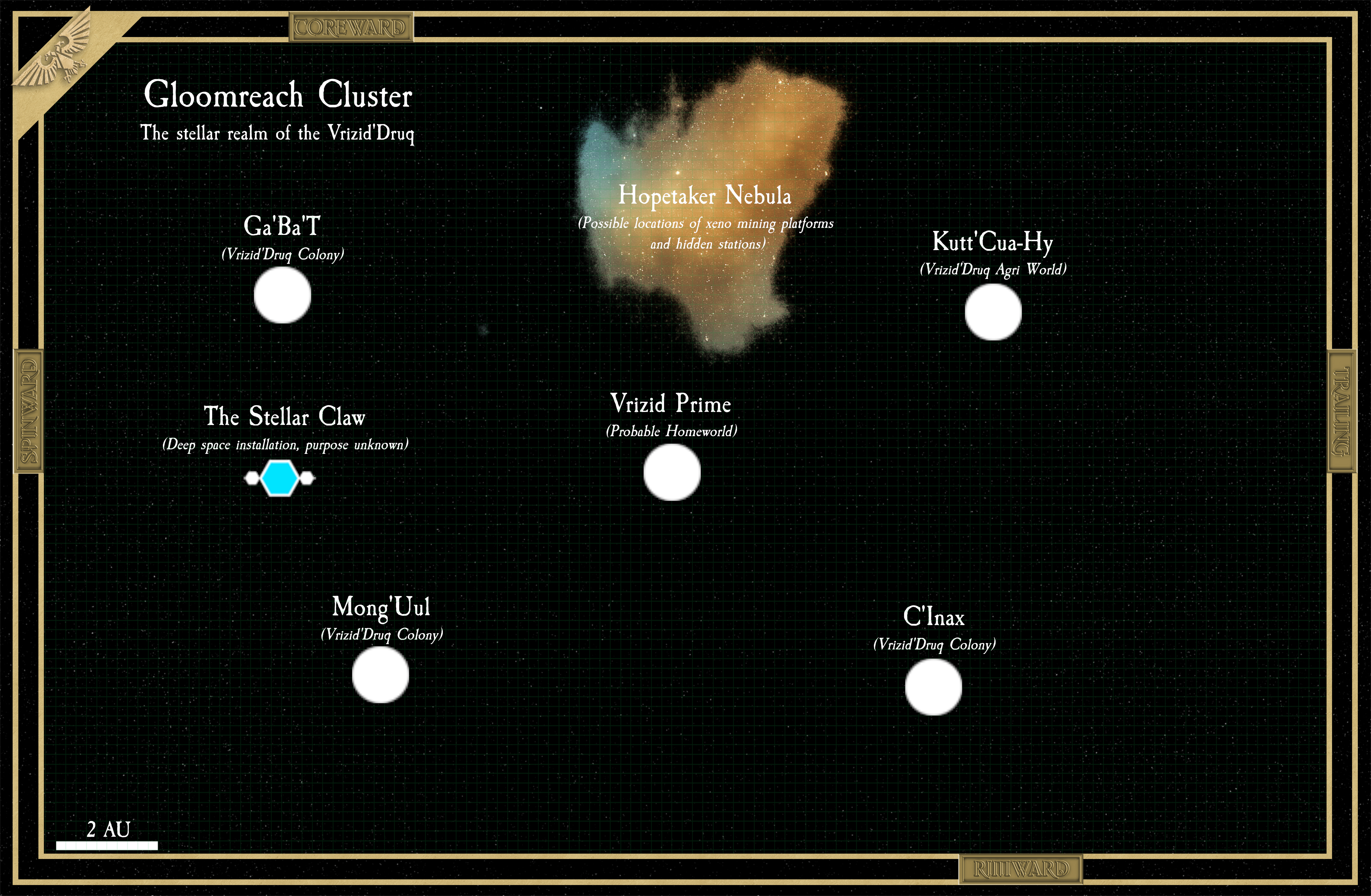 Mizar was settled during the Dark Age of Technology by humans from Terra’s Scandinavian region who built up a mythology based around bits and pieces of Finnish and Norse pagan myth mixed with Death Metal and other snippets of culture from the region spanning millennia. Due to ancient genetic tampering, some of the planet’s inhabitants are borderline abhuman. Despite the planet’s peculiarities, it has proven itself more trustworthy than other key planets in the Wurmcrux Subsector.