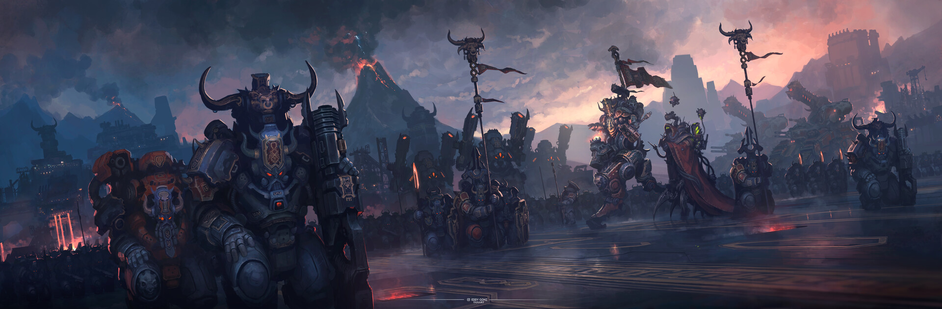 Although Mizar has been raided by Orks and Dark Eldar on many occasions, it is the forces of Chaos that seem to have the strongest interest in the planet. The reasons for this are unclear, but it is probably a combination of its mineral wealth, (relatively) poor defenses, and the potential to twist its pagan mythology into a full fledged Chaos worshipping culture. The most recent attempt to invade the planet occurred only a few years ago, when an alliance of Chaos warbands, mostly followers of Slaanesh and Khorne, but spearheaded by the Tzeentch worshipping Chaos Knights of House Desmond, laid siege to a number of Mizar’s fortress cities before being driven off by the Imperial Navy.