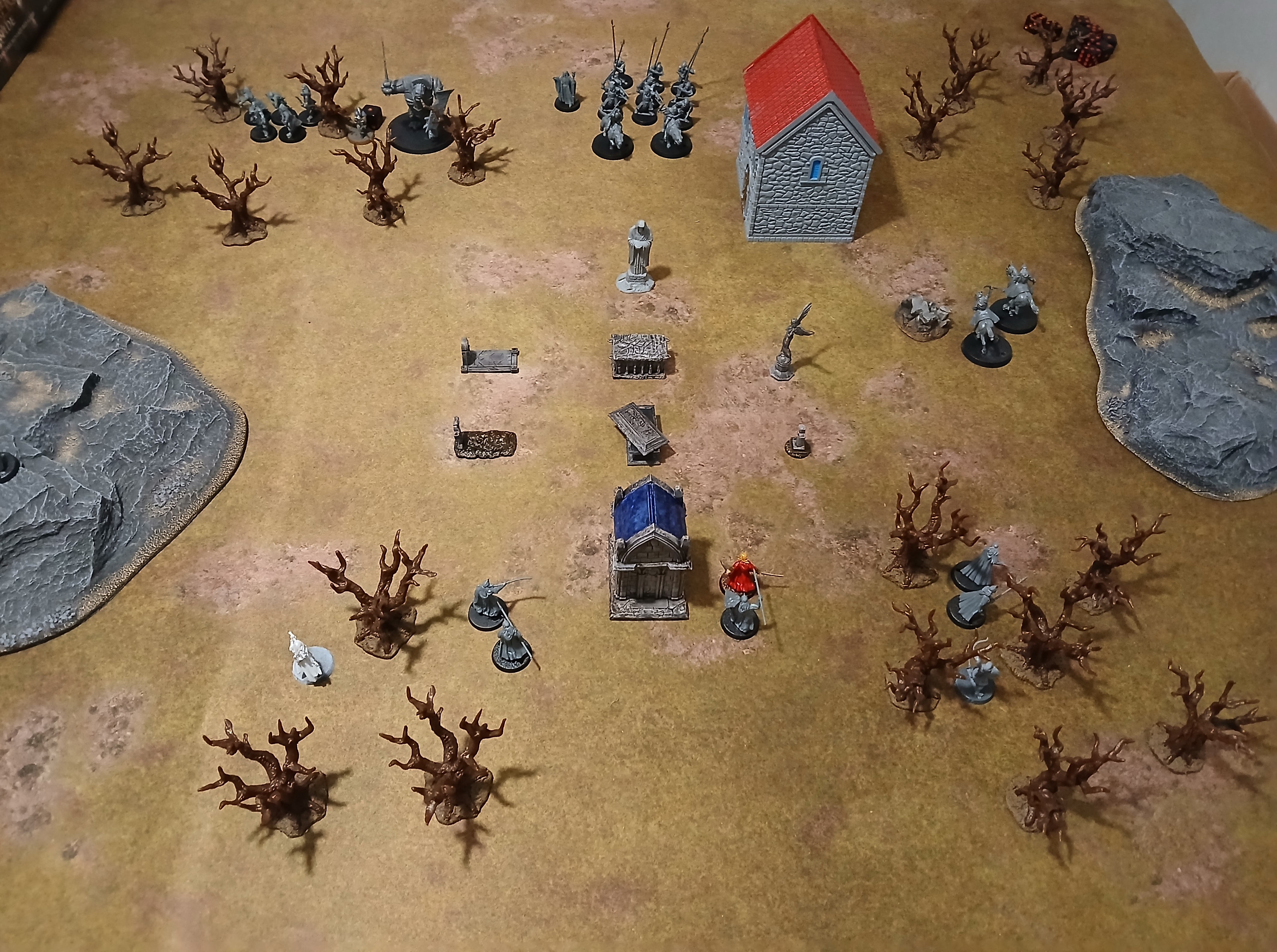 Got a super fun game of MESBG (2018 edition) in tonight. Lothlorien vs Isengard. The Wood Elves were fighting to stop Saruman from freeing, and gaining control of, a powerful wraith from it's tomb in the shadows of the Grey Mountains.Wood Elf win, if only just. I managed to snatch victory from defeat in the final turn. This game also had one of the most badass moments of any MESBG matches I've played, with Orophin laying low an Isengard troll while on fire following a Flameburst from Saruman. He slew the troll before succumbing to the flames, like a legend lol