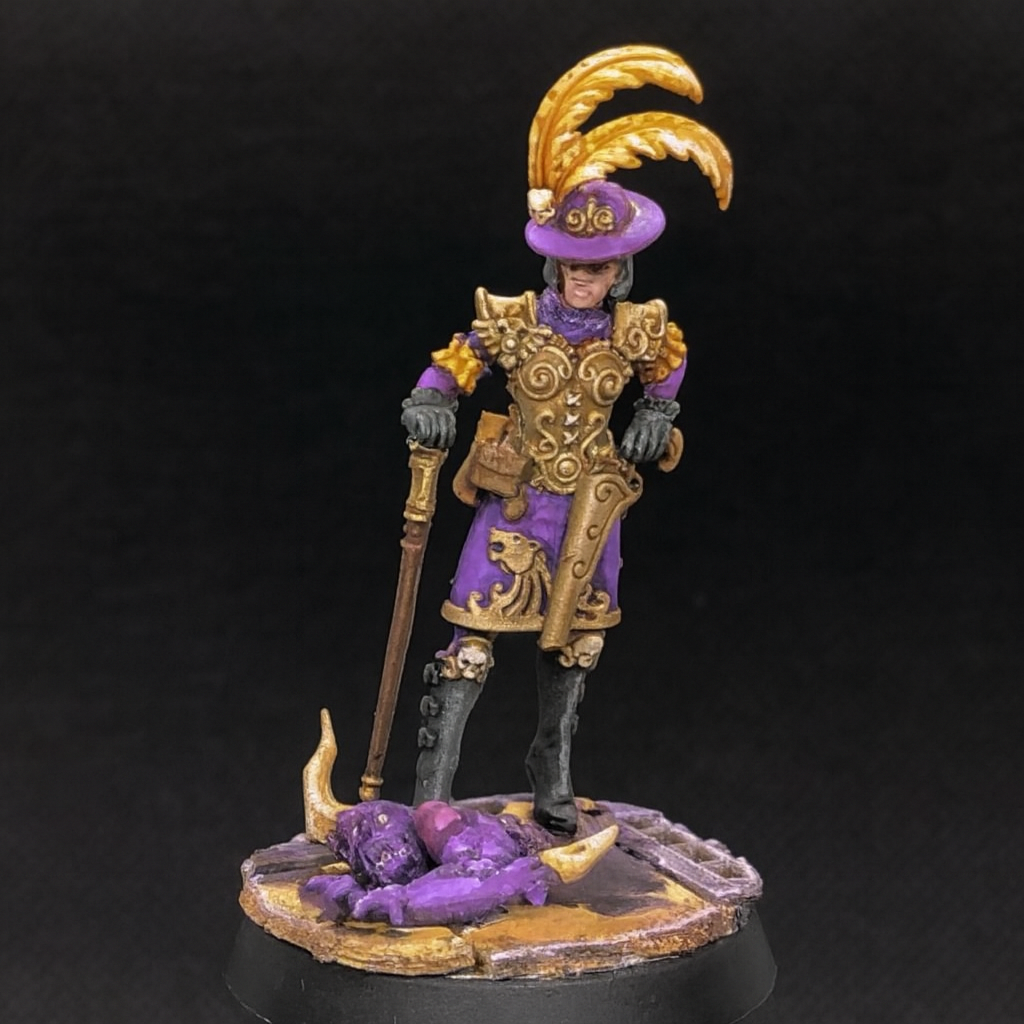 Evening gents!I'm struggling to find a good color/paint scheme for Elucia Vayne... Her model seems cool but the box art doesn't do it for me.Something like this (sorry for plebbit link, my IP range is banned from uploading images for some reason)? https://old.reddit.com/r/killteam/comments/14q1d0e/i_drew_elucia_vhane_the_starstriders_leader/Maybe with purple/gold? idkVoidsmen = white/blue/goldVoidmaster = dark blue/navy & black.Medic = white & goldElectropriest is red obvs.ASSassin - maybe green & black like the box artPupper = rottweiller