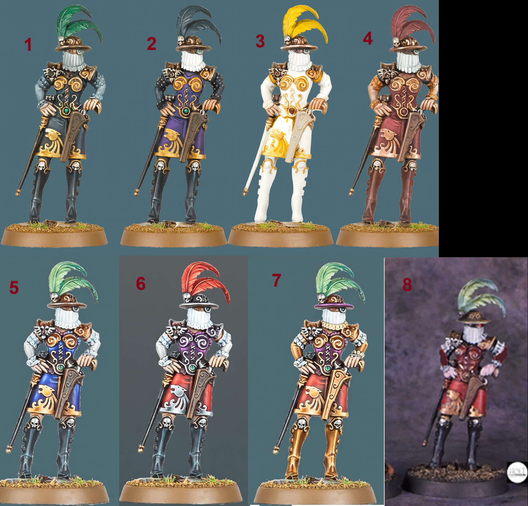 >>97168627I like the lace sleeves on #5 matching the veil, looks fitting. rest of the colors are nice too. I'd do red for the main garb but that's just cause I like red more. I also like the ones that have the blouse and the skirt in different colors