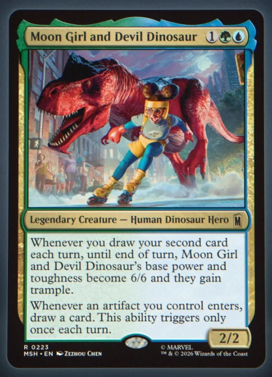 >>97149654The end of normal mtg sets is a matter of time. I think it will take some time for them to be phased out entirely though as WoTC don’t have to pay licensing fees etc. They’ll definitely dig into their own IPs though. MLP already had a secret lair, a full set is just around the corner. Expect it to be even cringier than whatever the fuck this card is.
