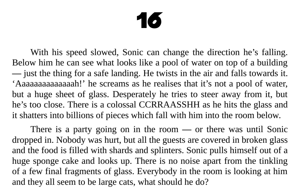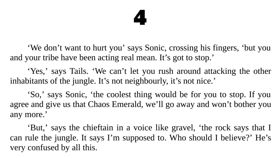 >TAILS, GET YOUR LAZY ASS OVER HERE RIGHT FUCKING NOWOR>Roll up and hope that softens the fallOR>Fashion a parachute out of the camouflage given to you by the warthog tribe