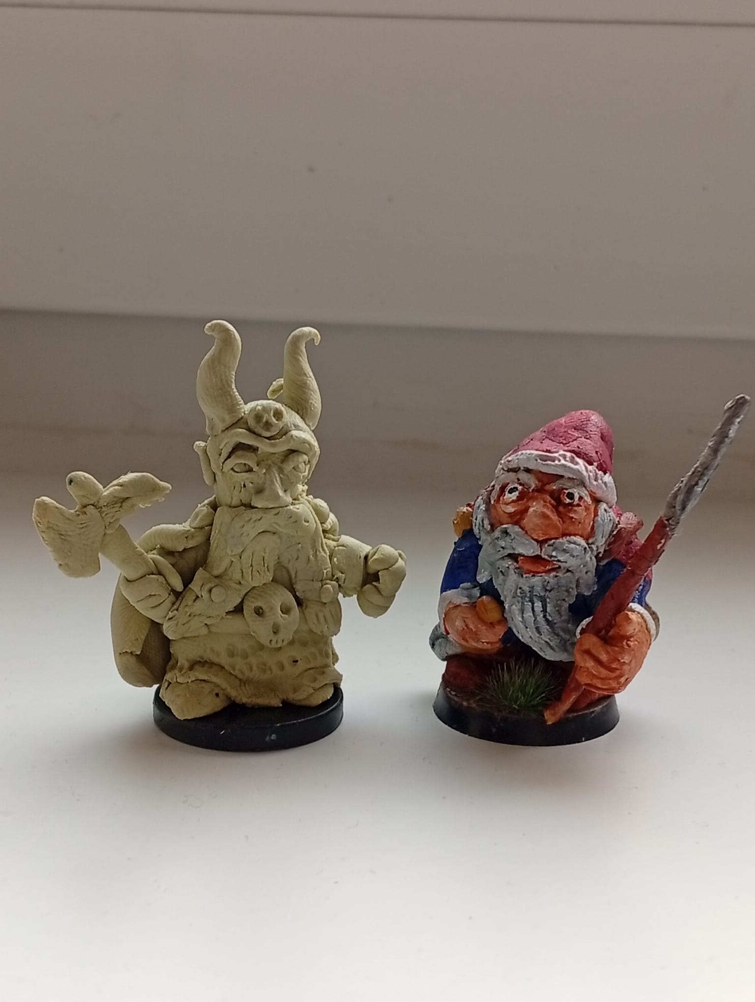 Made some dwarves out of greenstuffThe stuff I see here is really green, compared to mine. I use milliput brand greenstuff, one gray and the other stick is lime green