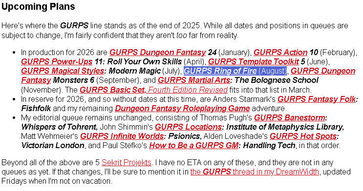 >>97278989Kromm apologizes in today's Daily Illuminator. https://www.sjgames.com/ill/archive/2026-01-02Also, GURPS Ring of Fire counts as a large projects with special needs"! (Insert obvious joke here.)