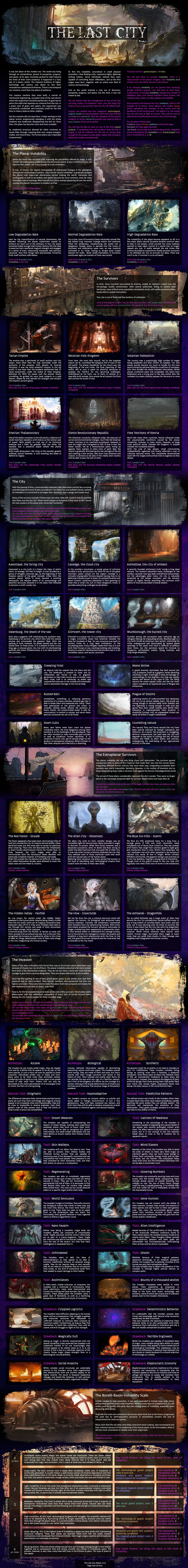 >>97245633>Upbringing:Paradise World (High Class)>Polity of Origin:Horsehead Federation>History:Old Nobility>A New Life:Hope>Sponsor:Order of Sacred Ascension (Holy Mission)>Specialization:Artifact Acquisition>General Traits:Left For Dead, Psi-Sensitive (-psychological effects)>Skills:VR Assisted Training (Biology, Cybernetics), Combat Training, Psionics Mastery, Tactics, Athletics Mastery>Cyberware:Logic Processor Assistant, Memory Assistant, Psionic Implant>Gene Mods:Rejuvenation Treatment, Third Eye Treatment, Neural Bridge>Psi Abilities:Psychic Scream, Psi Infusion, Focus Awareness, Intrusive Hallucination>Weapon Preference:Handguns>Equipment:Psi-Enhancers>Artifact:CompassThe artifact that leads to other artifacts.>Ship:Type: Military Patrol CraftWeaponry: Thermic BasedUpgrades: Upgraded Point Defense, Small Med Bay, Basic Fabricator, Simple Laboratory, Targeting Assistant>Homebase:No HomebaseUse Order property as temporary bases.>Connections and Favors:Apex Psychotronics: Psi-tech are the most valuable items below artifacts, and psi abilities are the peak of personal power.Mase Ho, Priest of the Order: Direct Order status upgrade is the greatest benefit in this section.>Pets:2 Cheerful SAR Drones>Companions:Lone WolfUse Order subordinates as crew.>Priority Contracts:The Monolith: Lead Order personnel to retrieve this artifact.Industrial Blunder: What a treasure trove. Lead Order personnel to excavate the ruins.Containment: How can this marvelous artifact be destroyed? Report Zhu Kao's violation and lead Order personnel to recapture this artifact.Party Nights: Negotiate a deal on favorable artifact prices.