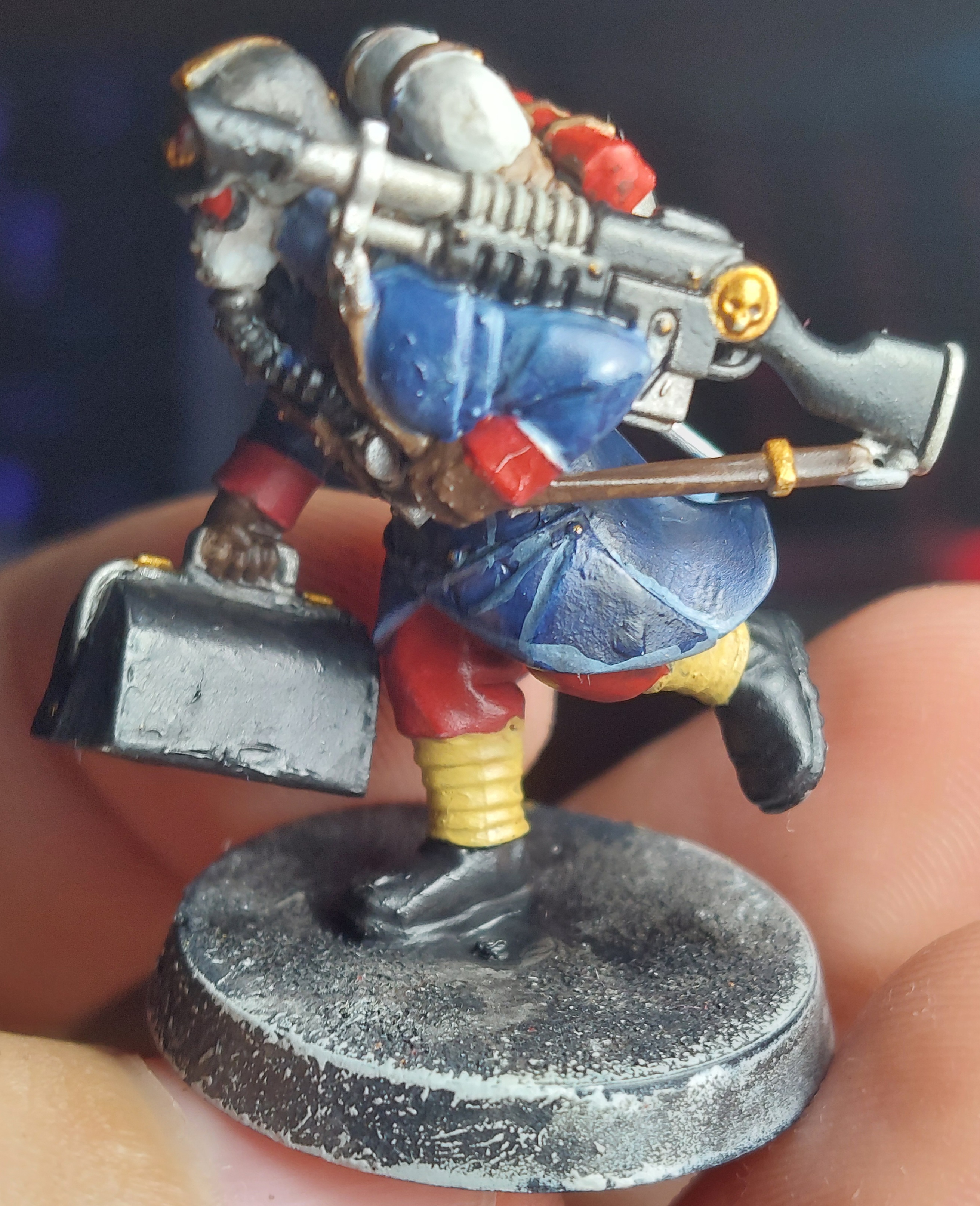 >>97276341This is the most recent model i finished a few days ago and the finished look so to speakTrying for those bright colours that get dirtied a lot darkened due to fighting just a smidgen.I gave the model excluding the gun and bag a coat of agrax and had a buddy suggest giving it a cost of nuln oil as wellIt looked a lot better after the nuln oil dried up and settled in.If cracks do affect it that much I could just strip them as it isn't a big deal and follow your advice of warming up the primer and giving it a new coatI try to keep it simple if I can