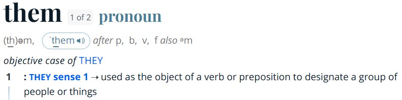 >>97293217>You did use the pronoun "them".Is this what it feels to grow old, seeing commonly understood things become retarded brainrot?