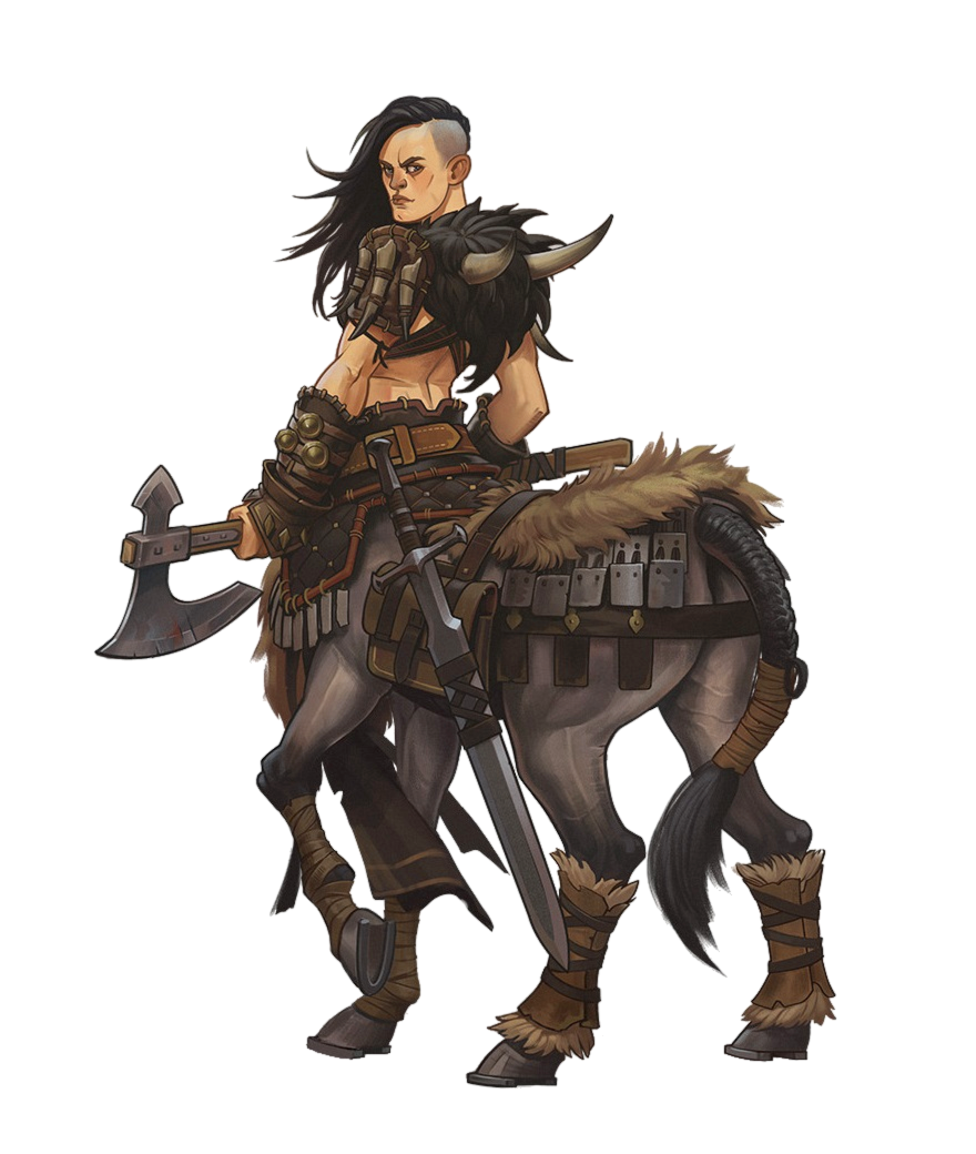 >gameplayFor Centaurs, you should be able to use them as mounts when not in combat if they're lightly armed & armored. I think you could ride into battle with them and fight on their back without overburdening them, depending on your loadout. Squeezing into dungeons and caves might be a bit of a bitch, and your centaur companion may find themselves too cumbersome to accompany you in certain locations. If people in wheelchairs can make do, I'm sure a transmog potion or a shrinking potion might solve the problem.>fantasy settingsThey're more at home here for sure, like having a horse. Some taverns may give you a hard "no" for your centaur companion, but I'm sure regions that are steeped in centaur culture or adjacent ones have accommodations for their unique anatomy. If nothing else, they could help carry your camp supplies and other provisions. >loadouts for fantasyIf you're not riding them, I think they can be pretty well armed and armored- think tower shield and a mace/flail. They also make good spearmen, so I think they'd be comfortable wielding a halbard and similar pike-style weapons. This would be with them wearing plate mail cuirass for the human portion and chainmail curtain over their horse hind quarters, or perhaps some specially fitted Gambeson. Other plate sections could be fitted to their horse body as needed. Archery and crossbows seem like they'd work for ranged options. I've not considered them using magic, but having a fairly mobile spellcaster seems cool as well.
