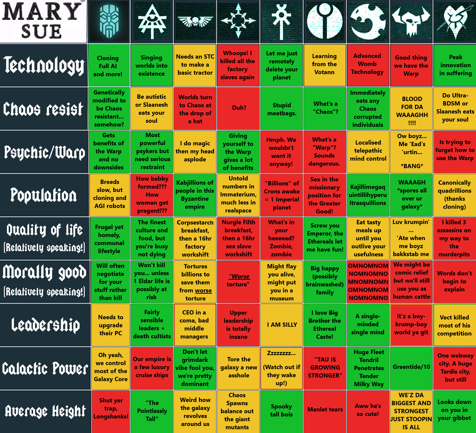 Okay /40kg/, where does your favourite faction fall in the Mary Sue rankings?