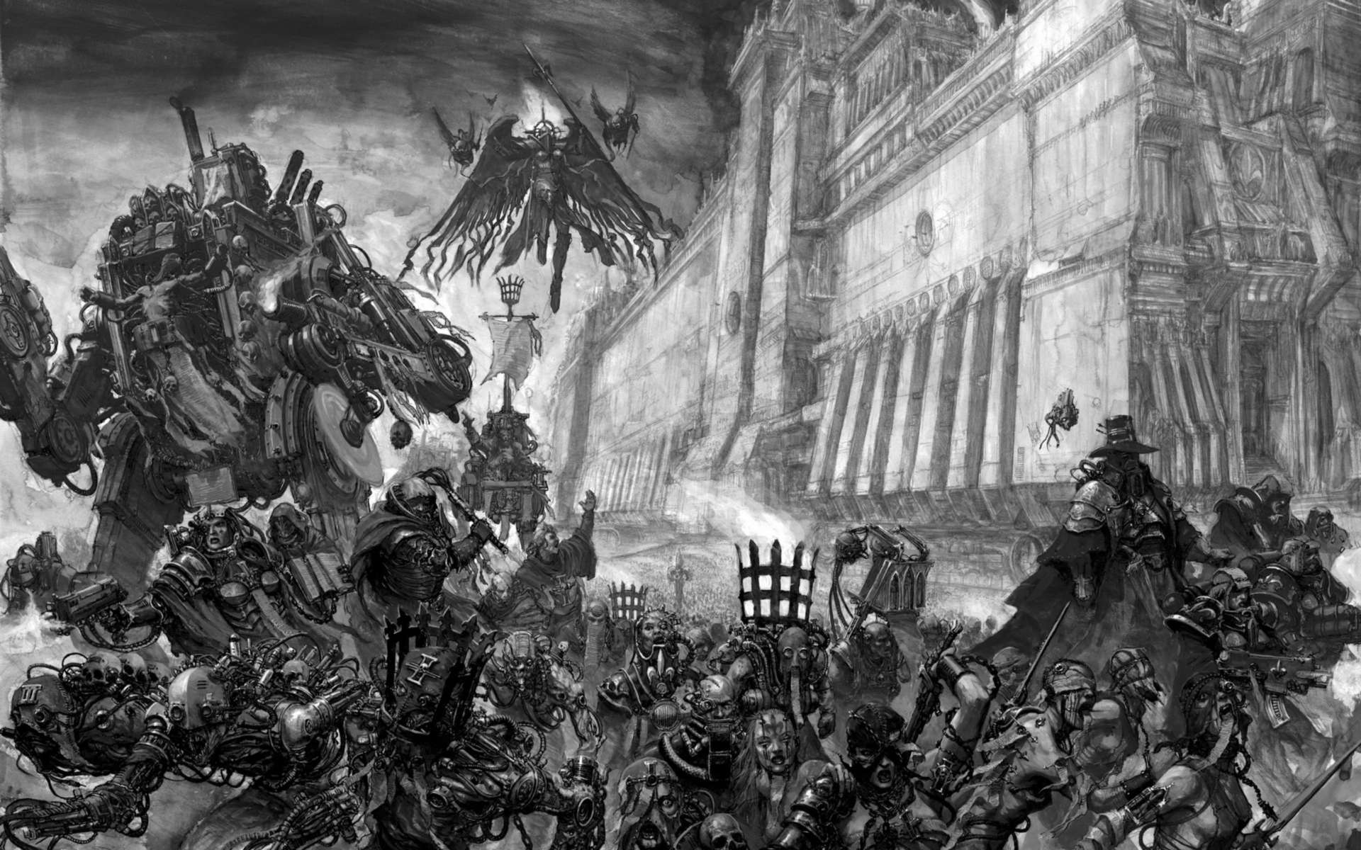 >>97281821>>97281778>>97281967>Abadabadoodon raises an army to strike at Terra.>The system defenses fall, and Terra looks to be next with Guilliman and the Lion both on the wrong side of the Rift.>In their darkest hour, Dessian enacts the Last Wall doctrine.>This triggers an alert wherever Dorn has been keeping himself. In his grief post-Heresy he decided the Imperium would be better off without him.>He returns to lead the final defense, dressed only in the simple black armor he put on during the siege of the Cage of Iron.