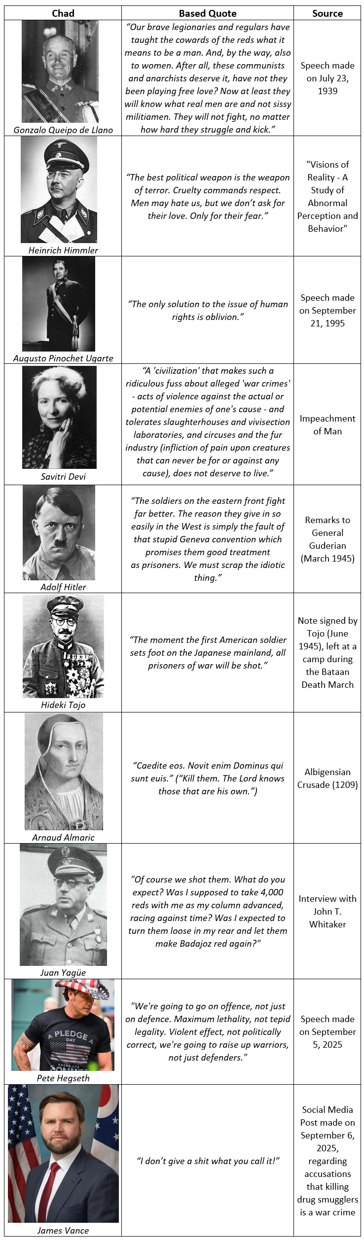 >>97299536The Albigensian Crusade was a completely success, the Nationalists won in the Spanish Civil War, Pinochet died without being convicted and with Chile intact, while Pete and Vance just helped oversee an ACTUAL special military operation that saw a foreign dictatorship fall in less than 10 minutes.I guess you got the Axis losers right at least? Lol