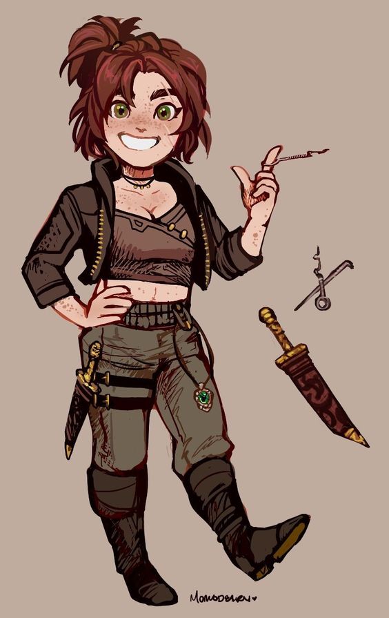 >>97301712Dark Sun setting I made my character one of The Offspring.She is a Tiefling capable of using Templar magic without having to be granted it. Like a Warlock that's their own Patron.She acted as a Templar until a mission gone south where she was supposed to spy in someone by arrogantly decided to engage and convinced her friends to do the same.She was sold as a slave and lived like that for seven years until the start of the campaign.She tends to focus more on avoiding fights now preferring to lie or talk her way out of conflicts having lost her confidence.